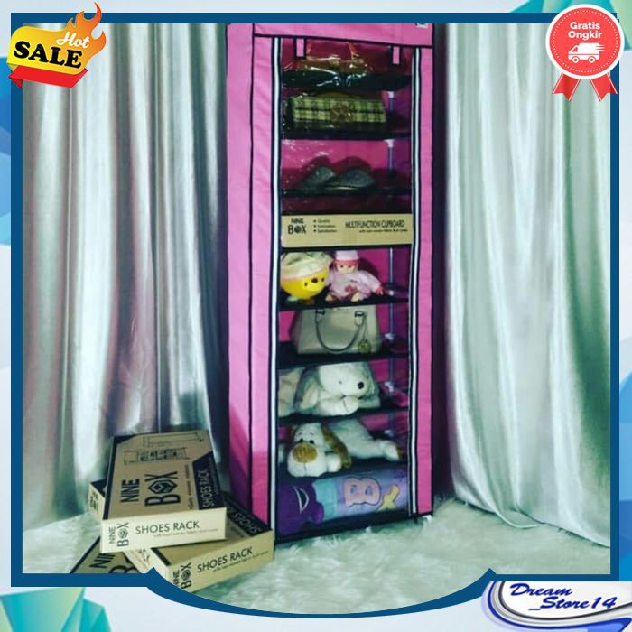 Barang 100% ORIGINAL MERK NINE BOX (BUKAN BARANG KW/CHINA)gojek dan grab aktif jam 18.00-10.00GOJEK DIPICKUP SETIAP JAM 1-2 SIANGPRODUK TIDAK BERGARANSI - NO KOMPLAIN -WAJIB TULIS 2-3 WARNA CADANGAN DISETIAP ORDERAN - JIKA WARNA YANG DIORDER KOSONG AKAN LANGSUNG DIKIRIM RANDOM - NO KOMPLAIN - TIDAK MELAYANI KOMPLAINAN DI PUSAT RESOLUSININE BOX Rak Sepatu dengan Cover Penutup DEPAN TRANSPARAN10tingkat/9ruang (Jumlah rangka ada 10susun / Jumlah ruang ada 9 ruang)Lemari sepatu serbaguna untuk menyimpan berbagai koleksi kesayangan Anda.Ada rangka nya dan dapat berdiri sendiri, jadi anda tidak perlu repot-repot melubangi dinding lagi.SPESIFIKASI PRODUK NINE BOX:~ Ready 9 WARNA KOMPLIT (Merah,Abu-Abu,Biru,Pink,Hijau,Ungu,Maroon,Cokelat,Hitam)~ Material menggunakan bahan-bahan berkualitas seperti :1.Rangka Pipa Besi dengan ketebalan 0,30mm,BUKAN 0.22MM (PRODUK CHINA)2.Konektor plastik terbuat dari biji plastik Original3.Kain Non Wooven yang tahan air,lebih tebal,elastis,lebih halus permukaannya, dan warna lebih bercahaya/glossy.Penutup/Cover :1.Kain Non Wooven yang tahan air,lebih tebal,elastis,lebih halus permukaannya, dan warna lebih bercahaya/glossy,tidak mudah robek (Dapat dicuci)2.Menggunakan Resleting di bagian pintu agar pintu bisa tertutup lebih rapat dan velcrow/perekat di bagian dalam yang berguna untuk menyangga gulungan pintu saat dibuka.~ Beban Max setiap ruang : 5kg~ Dalam setiap ruang dapat menampung +- 3psg sepatu wanita~ Dimensi Product: 60x30x160cm~ Dimensi tiap ruang : 60x30x17cm~ Volume pengiriman : 3kg~ Packaging menggunakan Kardus baru dan tebal~ Model dirakit sendiri,bisa DIYKEUNGGULAN NINE BOX:~Pilihan warna lebih Banyak tahan air,lebih tebal,lebih elastis,lebih halus permukaannya, dan warna lebih bercahaya/glossy,tidak mudah robek (Jika kotor, cover bisa dicuci)~HOMEMADE,Kualitas dijamin lebih GOOD QUALITY dibandingkan yang lain.~HARGA BERSAING, TANPA HARUS MENGURANGI KUALITAS PRO