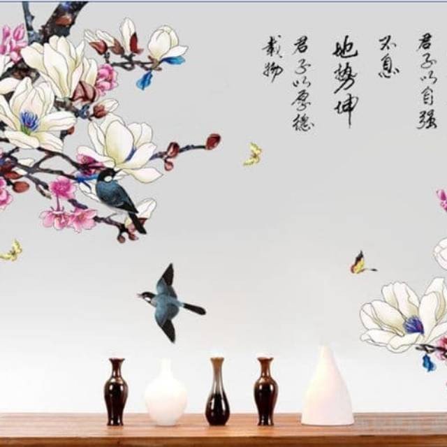 Suplier Perlengkapan di Kabupaten Hulu Sungai Tengah Stiker Dinding Wallpaper 60x90cm Motif Karakter Lukisan Burung Oriental Chinese Dekorasi Kantor dari Aksi Store Kota Bogor