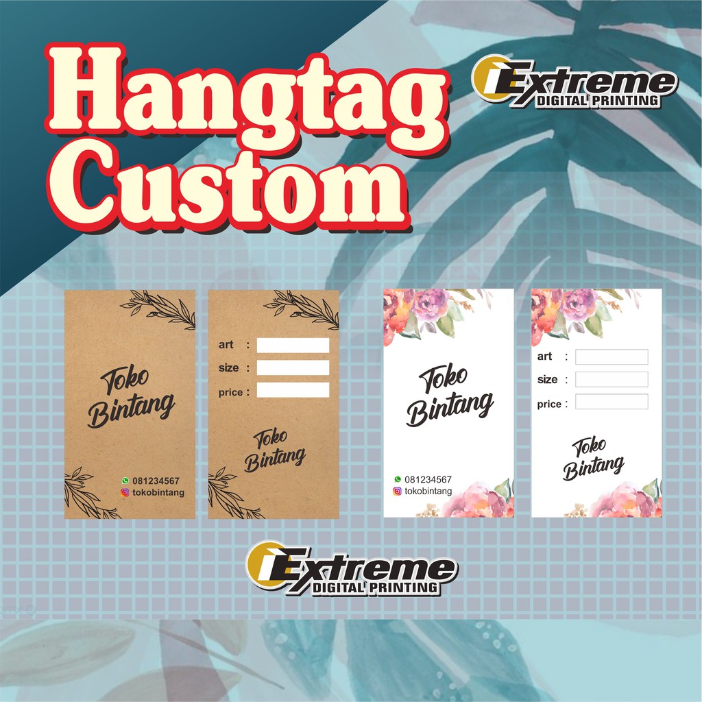 Hallo guys ...Geger nih:))ada yang keren di extreme..buat kalian yang mau memperkece tampilan produk kalian..ada hangtag custom nih.....bahan kerene nih..ivo 260kualitas ok banget nih..tebal loh...haiiooo.. baca diskripsi produknya jangan lupa ya :)-bahan ivo 260ukuran 4 x7bisa 1 sisi / 2 sisiminimal order 100 pcs ya guys..- Ucapan/kata2 lainnya yang mau ditambahkan (tidak bisa terlalu banyak)- bisa custom tulisan (tulis di chat)- bisa dengan desain sendiri / chat adminUntuk ketentuan custom desain, desain dapat dikirim via email.#hangtag #hangtagmurah #hangtagkeren #hangtagbagus #hangtagcetak #hangtagkece #hangtagmantab#sovenirbagus #sovenirmantab #sovenirmurah #sovenirusaha #sovenirproduk #hangtag p