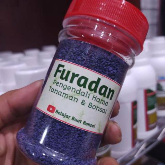 Furadan Si Pengendali Hama( Wadah Penyimpanan Kedap Udara Sehingga Aman Disimpan Dalam Jangka Waktu Lama )Fungsi :Mengendalikan hama Penggerek batang, Cacing, Uret, Semut di tanah.Dapat juga ditaburkan jika ada penganggu lainnya. Pakai secukupnya Cara penggunaan :Ditabur diatas media secara merata, untuk perkiraan pot ukuran 15cm bisa pakai 1 sendok teh.Kelebihan Furadan 3GR* Berbentuk butiran jadi tinggal ditabur* Bekerja secara sistemik dan efektif untuk mengendalikan hama bonsai dan tanaman lainnya* Efektif untuk mengendalikan hama didalam tanah seperti nematoda dan orong-orong* Daya simpan lama dan tidak mudah rusak * Dapat diserap oleh akar dan didstribusikan keseluruh jaringan tanaman, sehingga efektif untuk mengendalikan hama yang ada didalam tumbuhan seperti nematoda, penggorok daun (Leaf minner) dan penggerek batang + Dapat dipakai untuk mengendalikan hama penggerek daun / oteng-oteng * Dapat dipakai untuk mengendalikan hama bekicot/siput pada tumbuhan tomat, semangka atau timun * Efektif dipakai untuk mengendalikan hama uret/penggerek batang pada Bonsai Sisir Serta Tanaman lainnyaPenting :* Tidak disarankan pemakaian untuk jangka waktu yang lama* Tidak efektif jika diaplikasikan dengan cara penyemp