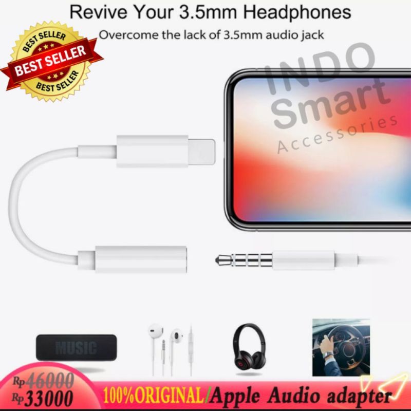 Banting Harga Perlengkapan di Kabupaten Tapin Lightning To 3.5mm Headphone Jack Aux Adapter For Iphone Bluetooth Sambungan Handsfree dari Tidak Ada Merek Kota Jakarta Utara