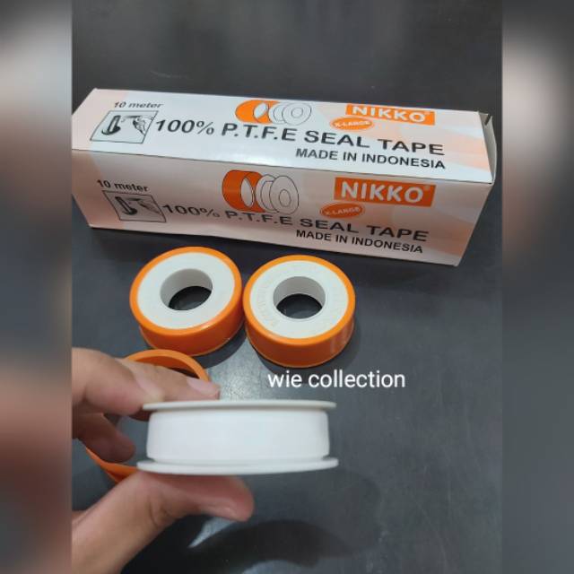 seal tape merk nikko dengan ukuran 10mtr..dijual per box dengan isi 12pcs..Terbuat dari P.T.F.E murnin100% ,memiliki sifat anti reakso,kimiawi,tahan terhadap segala jenis alkais,acid..memiliki sifat pelumas yang baik,dapat digunakan pada segala macam sambungan pipa metalatau plastik : seperti sambungan pipa pada alat tekanan minyak,instalasi kimia pipa gas,pipa air dll..Barang asli sama dengan foto (No Edit)..barang yang diorder akan melalui proses quality control (quantity dan kualitas akan dicek terlebih dahulu dan dipacking dengan rapi sebelum dik