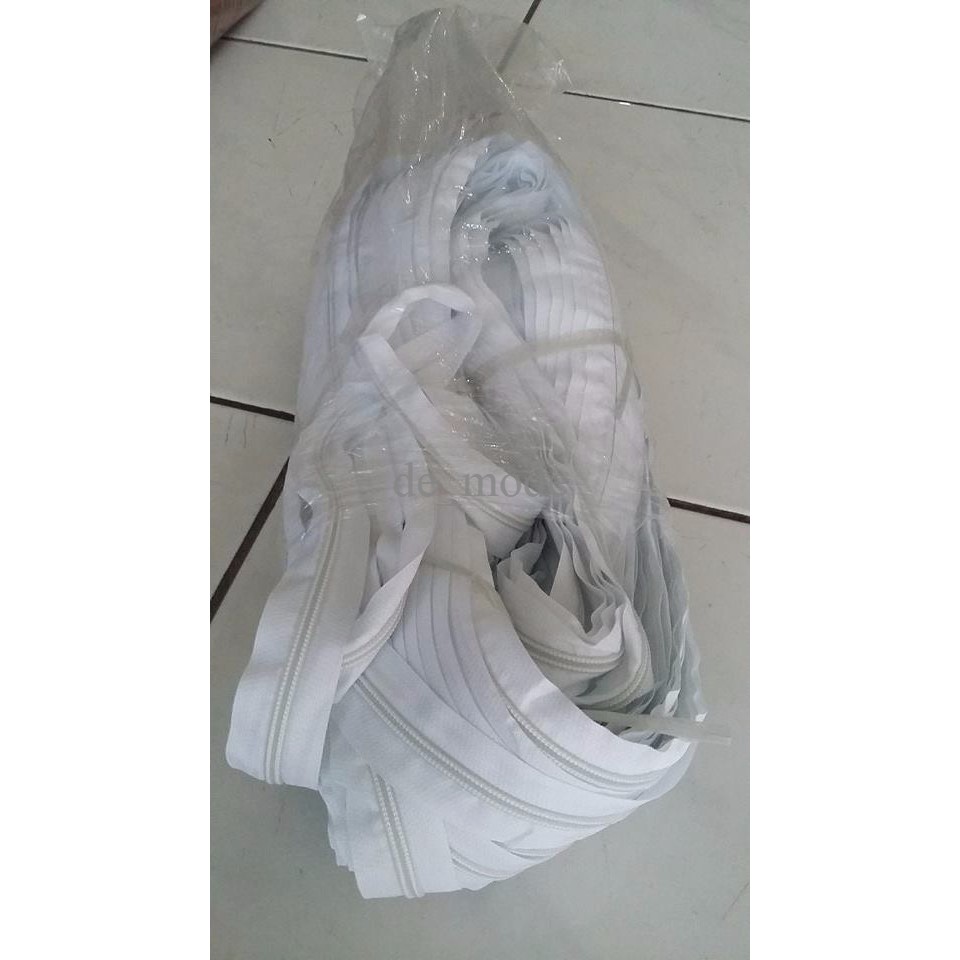Produk Daun Resleting Murah Ukuran No. 5 Putih Per Rol Gulungan biasa. Pengiriman biasa. fasilitas toko juga biasa. soalnya ane orangnya biasa aja .