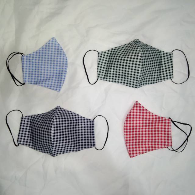 Distributor Perlengkapan di Kabupaten Murung Raya Masker Kain (bisa Selip Tissue) — Bentuk Lancip Motif Kotak-kotak dari Tidak Ada Merek Kota Jakarta Barat