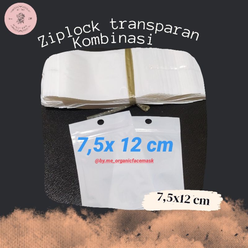 Name: Plastik Ziplock Kombinasi Transparan Putih Uk 7,5x12 Cm Cocok Untuk Wadah Masker 25gr / Per Lembar