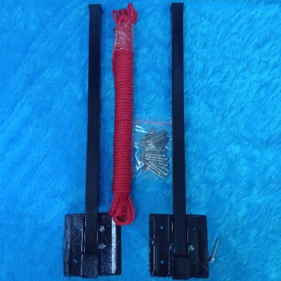 jemuran dinding lipat 4 baris,panjang bisa menyesuiakan tali tambang.panjang besi 50 cmbahan besi holo kuat dan tebal bisa di lipat ke atas di lengkapi pen pengunci sehingga lebih aman saat tidak di gunakan.(pengunci saat posisi di lipat keatas)isi pakettali tambang plastik 17 meter besi gantungan/penyangga 1 set (2pcs)fisher & skrup. 8 set #jemuran #jemuranlipat #jemurandindinglipat#Alatrumahtangga