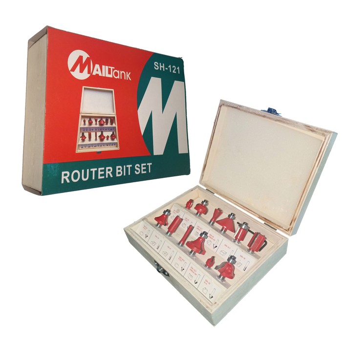 MATA PROFIL KAYU MAILTANK 12 PCS ROUTER BITS MAILTANKIsi paket ;- box kayu12pcs mata profil ass 1/4inchDescriptions:All heat-treated blade, with high concentricityResist torsion and strongHigh-grade carbide blade with sharp cutting, smooth rotation, operating lightTungsten Carbide Tipped Router Bits ;1/4" (6.35mm) Hardened Shank;Specification :Materialz45 # carbon steel, YG8 alloyColorzAs picture shownPacking:wooden boxShank Diameter:1/4":6.35mm/0.25"Wood Box Size:1/4":163 x 133 x 50mm (L*W*H)Each Size are as follows:Cove Box Bit : 12.7mmBearing Cove Box Bit: 22mm ; Dovetail Bit: 12.7mm;Bearing 45 Chamfer Bit: 32mm; Bearing Flute Trim Bit : 12.7mm; Straight Bit: 16mm;Rounding Over Bit: 22mm; Straight Bit : 12mm;Straight Bit: 6mm;Rounding Over Bit: 28.6mm; Grooving Bit: 12.7mm;Roman Ogee Bit: