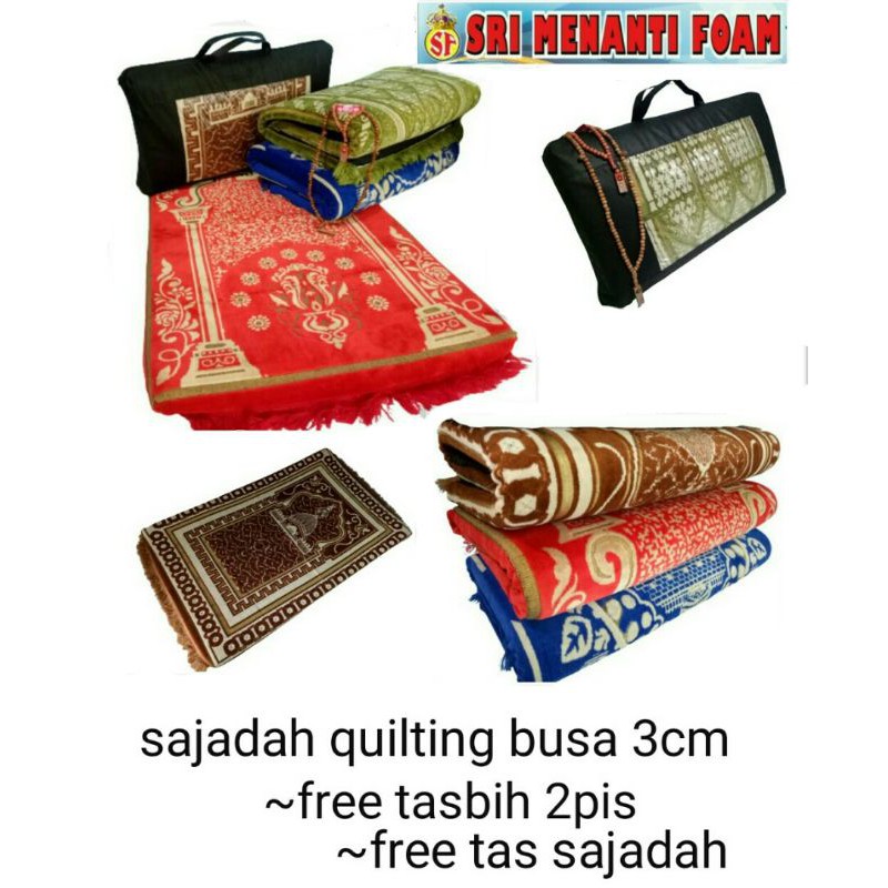 #BONUS TASBIH 2PIS..(99)DAN (33)#BONUS TAS SEJADAH JADI ENAK KLAU MAU DI BAWA KE MANA MANA TERLIHAT ELEGAN.sajadah lapis busa.anti slip ketebalan busa 3cm jadi sangat nyaman untuk ibadah..apa lagi untuk orang tua..yg mungkin lutut ada rasa sakit..ini solusinya..jadi sangat pas..sekali.untuk motif kita sesuai gambar di slide atas merah,ijo,coklat dan biru.#sajadah#perlengkapansholat#sajadahbusa#sajadah