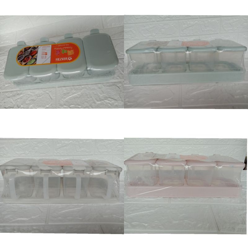 Ready ya bundTempat Bumbu Dapur isi 4 boxKeterangan-Desain Praktis dan bening berbahan plastik-Sangat cocok untuk melengkapi perlengkapan dapur -Dilengkapi tutup dan sendok pada masing masing tempat-Ukuran isi 300ml-Betat 300grBisa COD untuk Medan dan sekitarnyaUntuk order bisa langsung chat admin ya b
